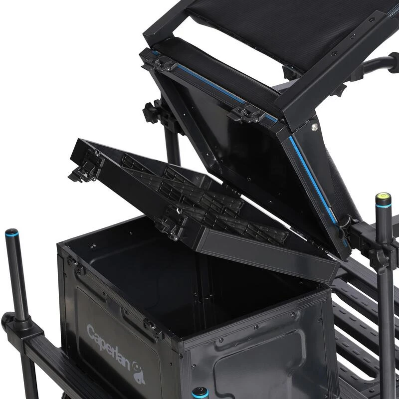 Nos équipes de conception ont conçu ce produit afin de faciliter le transport de son matériel jusqu’à votre poste de pêche avec une grande capacité de stockage.Très facile à transporter, cette station reste stable sur tous les terrains grâce à ses pieds larges et télescopiques. Ses rangements vous permettent de transporter tout votre matériel facilement.